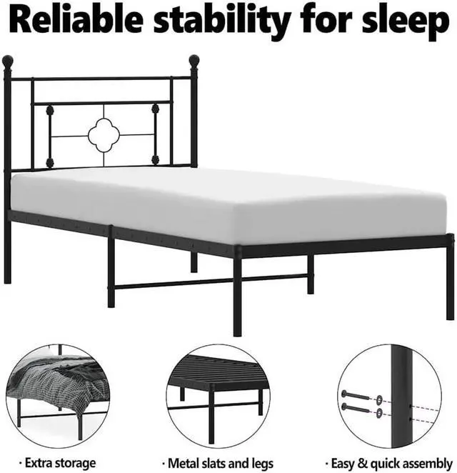 Metal slats and legs: The metal bed frame is complete with metal slats and center legs to provide your mattress with much-needed support and breathability.