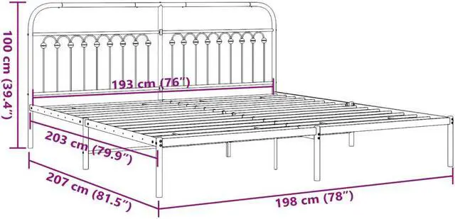 Metal slats and legs: The metal bed frame is complete with metal slats and center legs to provide your mattress with much-needed support and breathability.