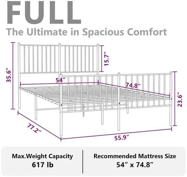 Suitable mattress size: 53.9" x 74.8" (W x L) Full (mattress is not included)