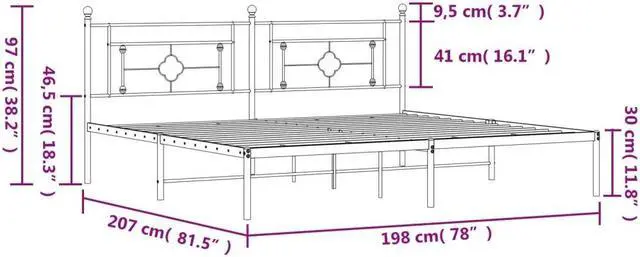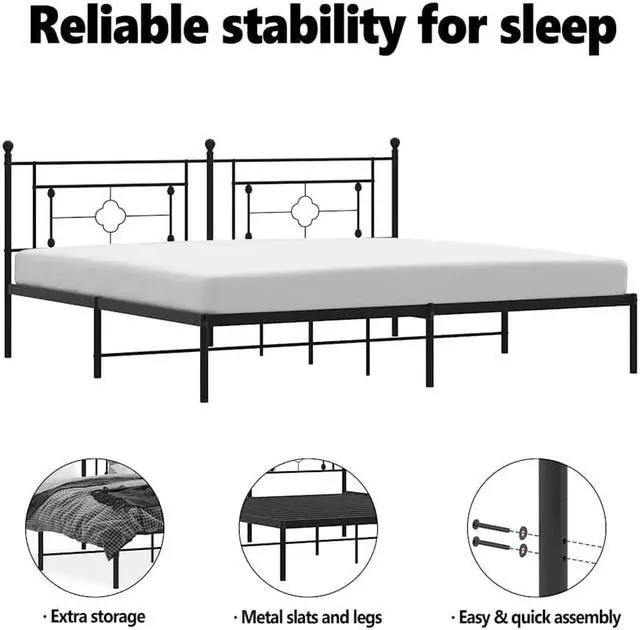 Metal slats and legs: The metal bed frame is complete with metal slats and center legs to provide your mattress with much-needed support and breathability.