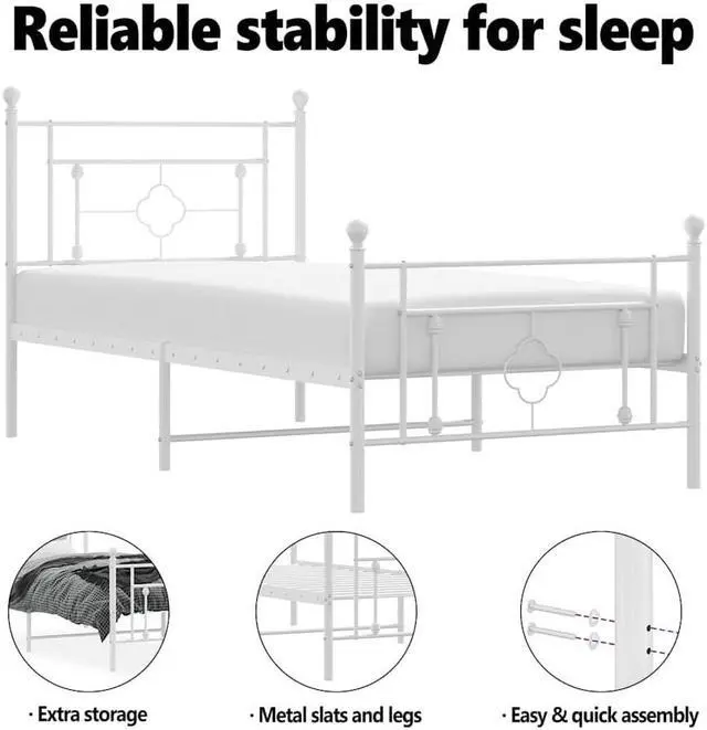 Metal slats and legs: The metal bed frame is complete with metal slats and center legs to provide your mattress with much-needed support and breathability.