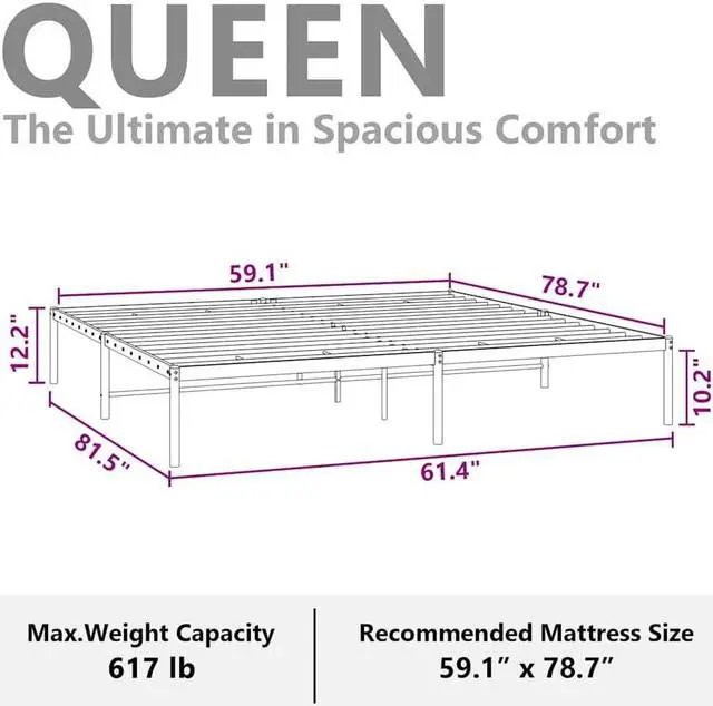 Metal slats and legs: The metal bed frame is complete with metal slats and center legs to provide your mattress with much-needed support and breathability.