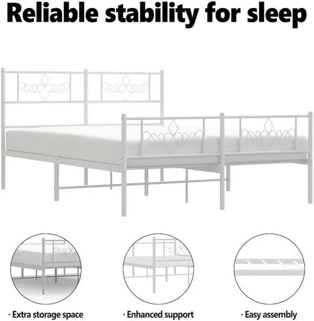 Metal slats and legs: The metal bed frame is complete with metal slats and center legs to provide your mattress with much-needed support and breathability.