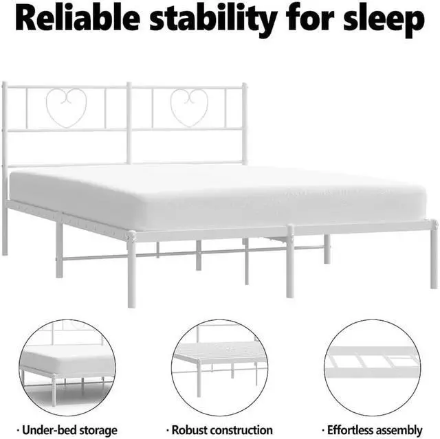 Metal slats and legs: The metal bed frame is complete with metal slats and center legs to provide your mattress with much-needed support and breathability.