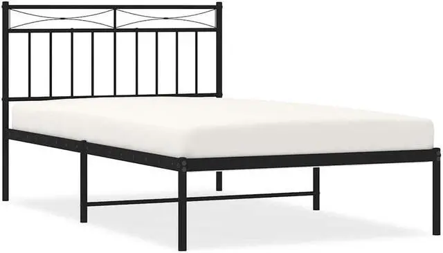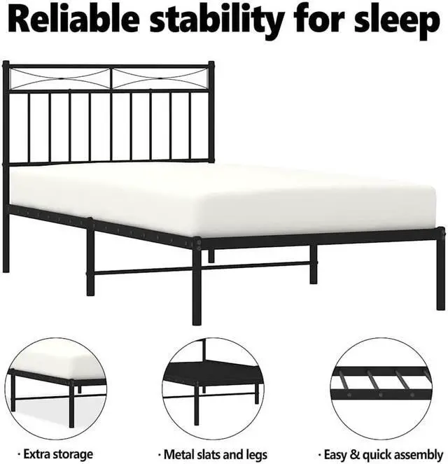 vidaXL 11'' Twin XL Metal Bed Frames with Headboard, Platform Bed Frame with Strong Metal Slats Support, Under Bed Storage, Noise Free, Black, without Mattress