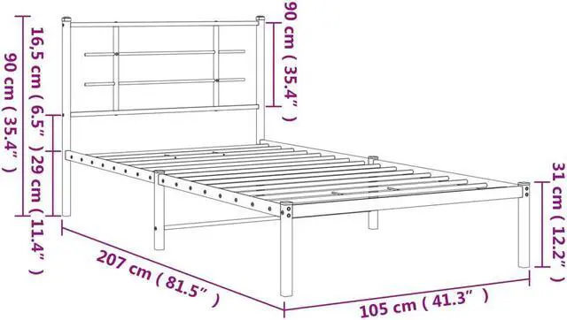 Metal slats and legs: The metal bed frame is complete with metal slats and center legs to provide your mattress with much-needed support and breathability.