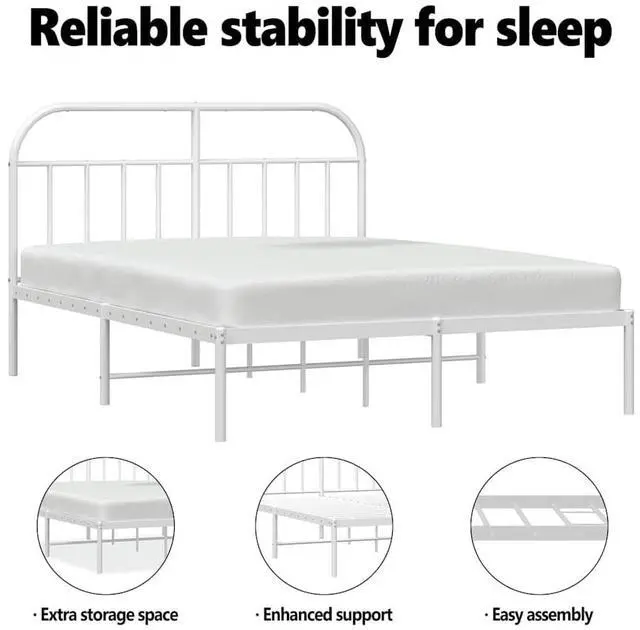 Metal slats and legs: The metal bed frame is complete with metal slats and center legs to provide your mattress with much-needed support and breathability.