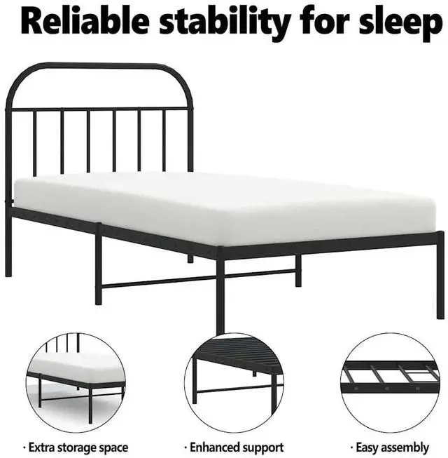 Metal slats and legs: The metal bed frame is complete with metal slats and center legs to provide your mattress with much-needed support and breathability.