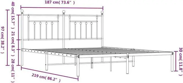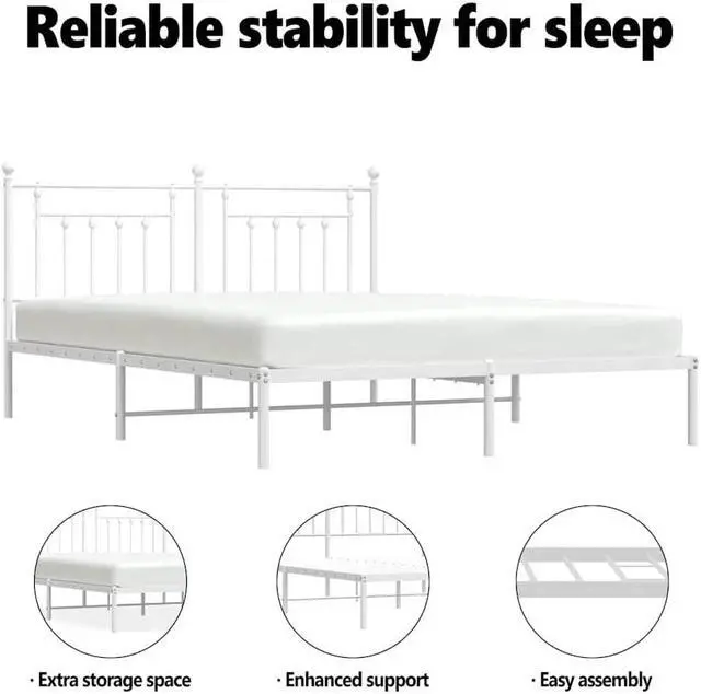Metal slats and legs: The metal bed frame is complete with metal slats and center legs to provide your mattress with much-needed support and breathability.