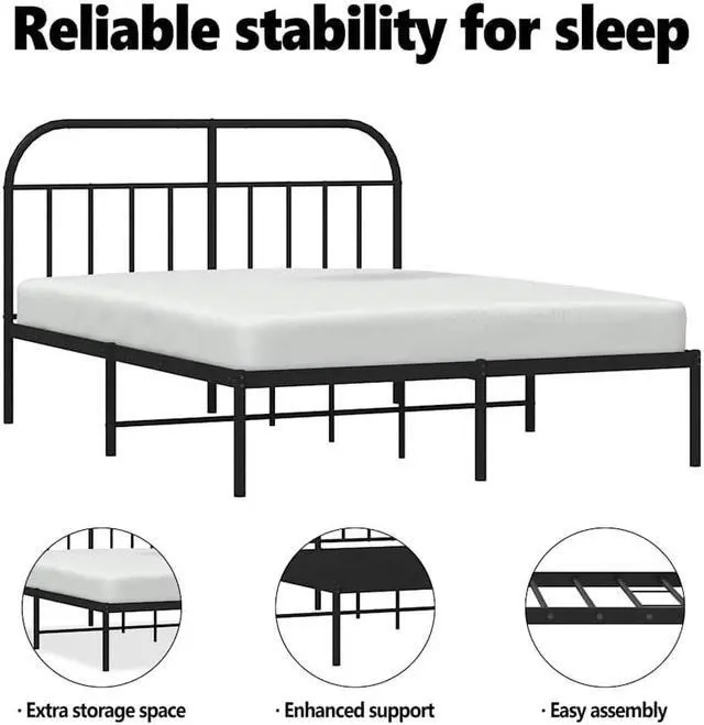 Metal slats and legs: The metal bed frame is complete with metal slats and center legs to provide your mattress with much-needed support and breathability.