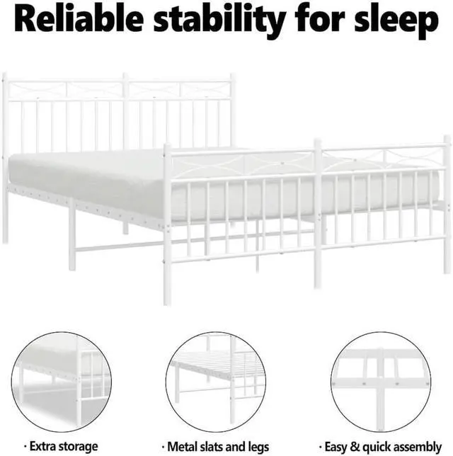 Metal slats and legs: The metal bed frame is complete with metal slats and center legs to provide your mattress with much-needed support and breathability.