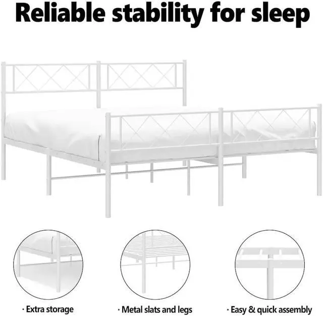 Metal slats and legs: The metal bed is complete with metal slats and center legs to provide your mattress with much-needed support and breathability.