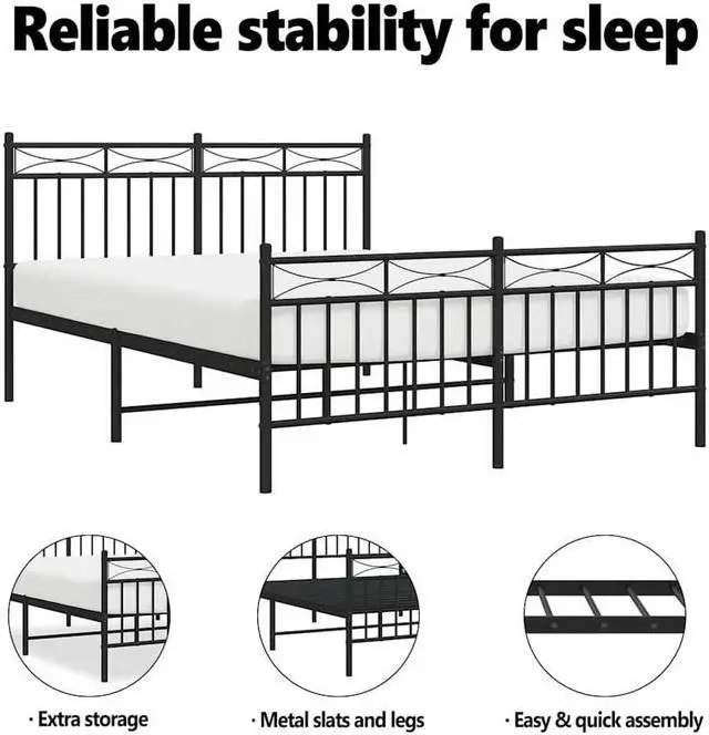 Metal slats and legs: The metal bed frame is complete with metal slats and center legs to provide your mattress with much-needed support and breathability.