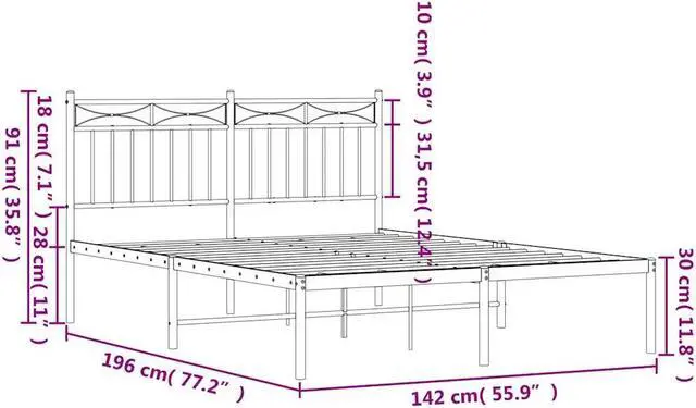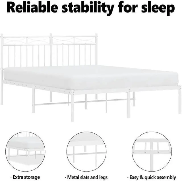 Metal slats and legs: The metal bed frame is complete with metal slats and center legs to provide your mattress with much-needed support and breathability.