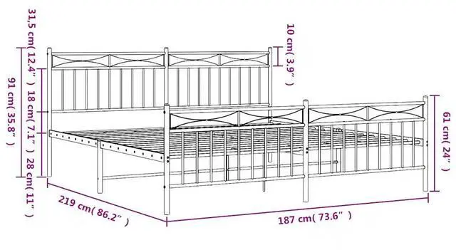 Metal slats and legs: The metal bed frame is complete with metal slats and center legs to provide your mattress with much-needed support and breathability.