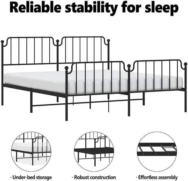 Metal slats and legs: The metal bed frame is complete with metal slats and center legs to provide your mattress with much-needed support and breathability.