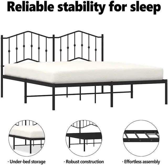 Metal slats and legs: The metal bed frame is complete with metal slats and center legs to provide your mattress with much-needed support and breathability.