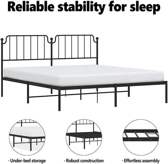 Metal slats and legs: The metal bed frame is complete with metal slats and center legs to provide your mattress with much-needed support and breathability.