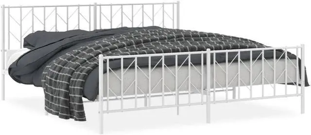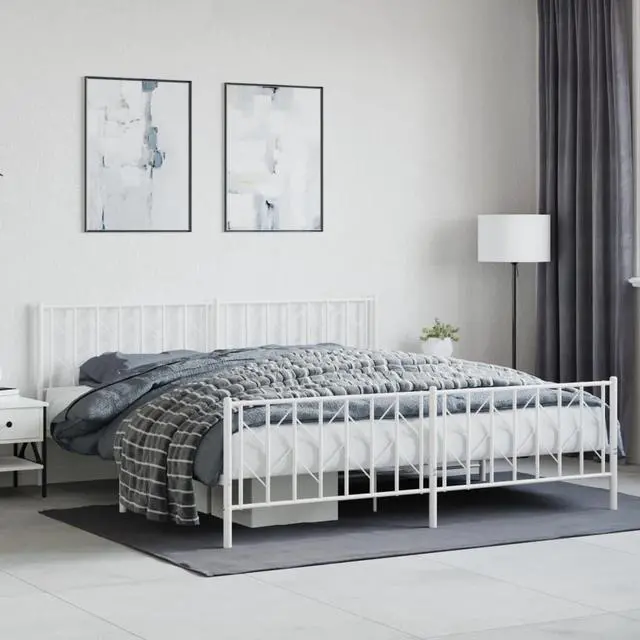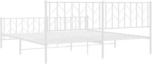 vidaXL 12'' King Metal Bed Frames with Headboard and Footboard, Platform Bed Frame with Strong Metal Slats Support, Under Bed Storage, Noise Free, White, without Mattress