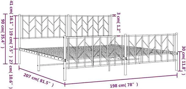 Metal slats and legs: The metal bed frame is complete with metal slats and center legs to provide your mattress with much-needed support and breathability.