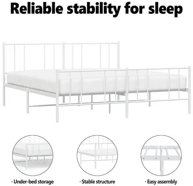 Metal slats and legs: The metal bed frame is complete with metal slats and center legs to provide your mattress with much-needed support and breathability.