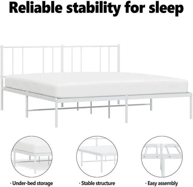 Metal slats and legs: The metal bed frame is complete with metal slats and center legs to provide your mattress with much-needed support and breathability.