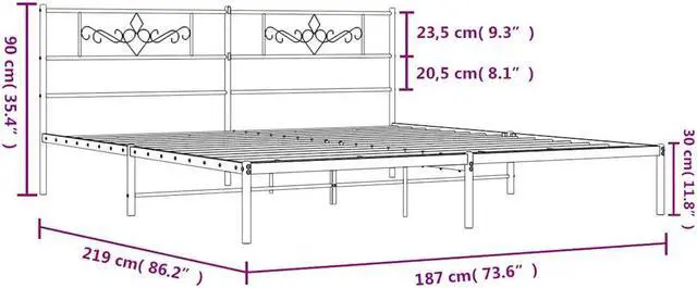 Suitable mattress size: 72" x 83.9" (W x L) California King (mattress is not included)