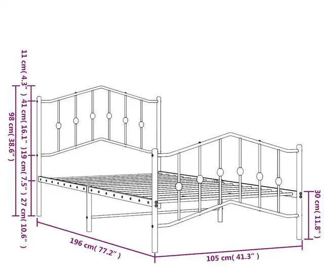 Suitable mattress size: 39.4" x 74.8" (W x L) Twin (mattress is not included)