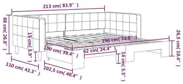 Dimensions (not extended): 83.9" x 43.3" x 26.8" (L x W x H)