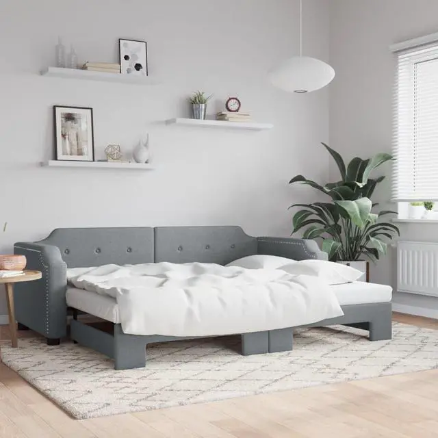 This Daybed with Trundle serves as a stylish and functional addition to your home. Its light grey fabric and contemporary design let it blend with a range of decor styles while providing practical sleeping solutions for guests or a comfy spot for lounging.