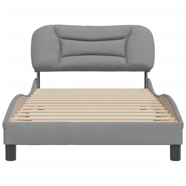The stylish wavy sides give a contemporary vibe, moving away from traditional bed designs. Made from soft polyester fabric, it offers a breathable, comfy resting experience thats perfect for sleep. With useful under-bed storage, it helps keep things tidy by stashing away linens or personal items. This frame can support up to 220.5 lbs, ensuring stability while comfortably housing one person. With a plush headboard cushion, this frame is a fabulous choice for reading or lounging, creating cozy moments.