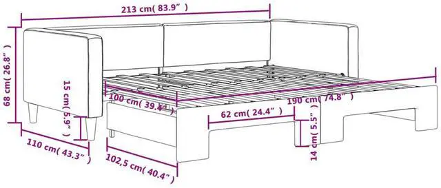 Dimensions: 83.9 x 43.3 x 26.8 in (L x W x H)