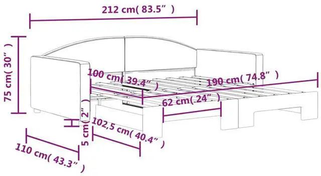 Dimensions (not extended): 83.5" x 43.3" x 29.5" (L x W x H)