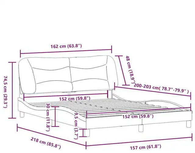 Suitable mattress size: 152 x 79.9 " (W x L) (mattress not included)