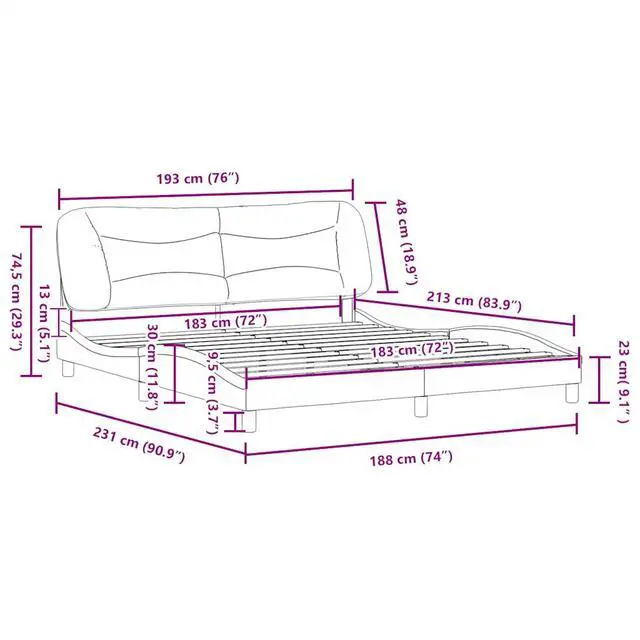 Suitable mattress size: 183 x 83.9 " (W x L) (mattress not included)