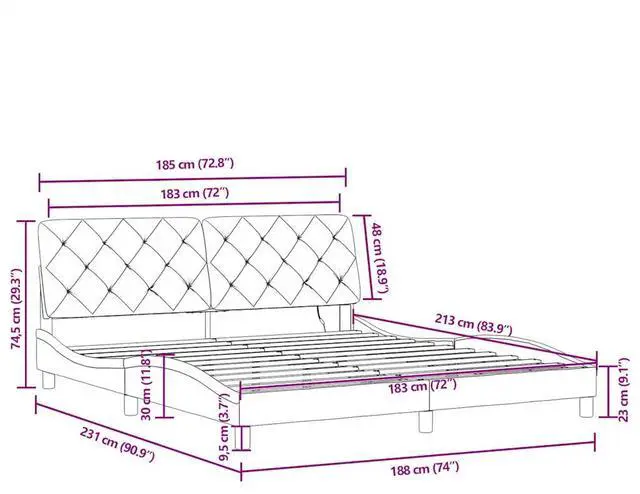 Suitable mattress size: 72" x 83.9" (W x L) California King (mattress not included)