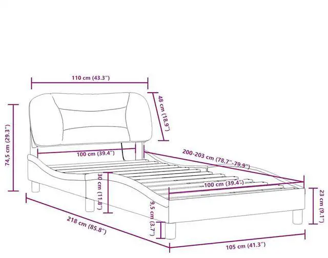 Overall dimensions: 85.8" x 41.3" x 29.3" (L x W x H)