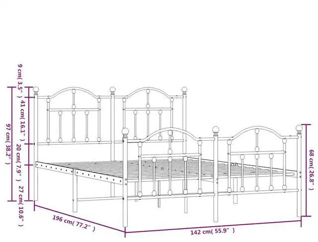 This metal bed frame is a stylish and practical sleeping solution, finished in a crisp white that makes it a great addition to bedrooms and guest rooms. The double size gives you plenty of room for a good night's sleep, easily fitting two people while blending with different decor styles thanks to its clean lines and chic headboard.