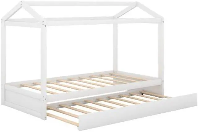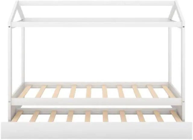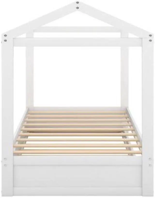 Let your kids imagination run wild with our House Bed. Perfect for girls and boys to make up their own theme or simply keep it beautifully simplistic. Can be decorated with ribbons or lanterns on the eaves. The bed has pre-drilled holes which are standard features of our beds makes this easy to assemble. Available in White with trundle. Assembly required.