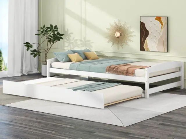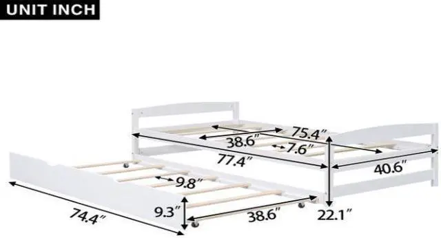 [With Twin Size Trundle] The trundle can effectively utilize the room space. The trundle can be pulled away from either side of the bed.
