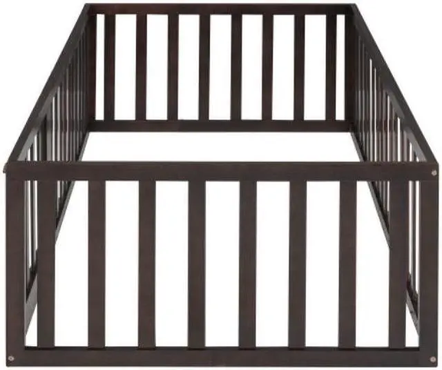 {Fun Design}This wooden floor bed frame has a circle of fences. There is a small door that can be opened and closed, which increases the interest of the bed and creates a more safety sleeping space.