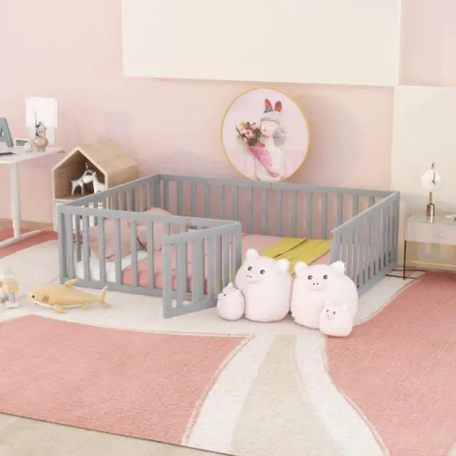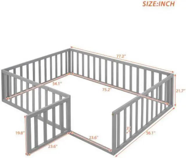 {Fun Design}This wooden floor bed frame has a circle of fences. There is a small door that can be opened and closed, which increases the interest of the bed and creates a more safety sleeping space.
