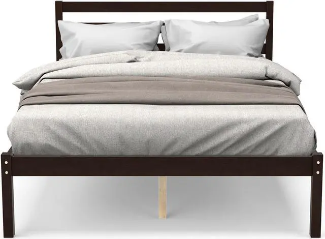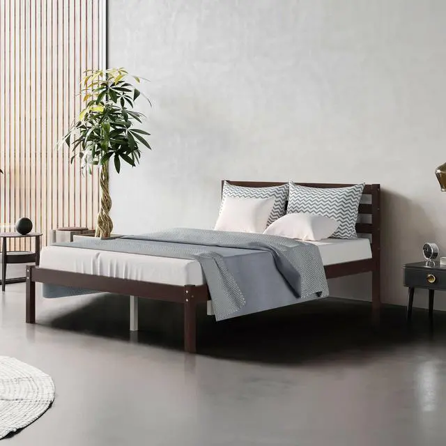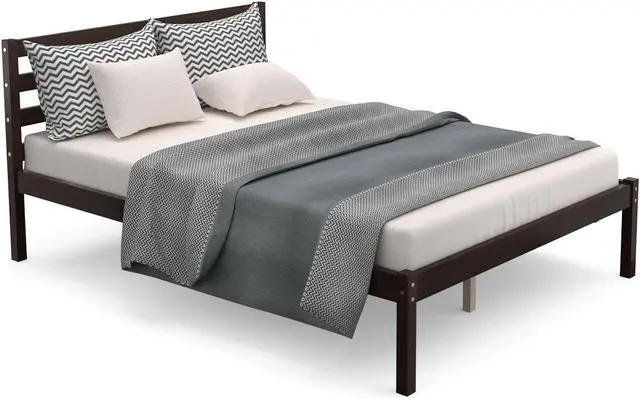 Comfortable Sleeping: The bed frame features a well-designed headboard with solid wood panels for comfortable using experience. Besides, supported by thicken 8 wood slats, this bed will not wobble when you roll over on it. Fixed by solid screws, the bed base makes no noise and creates a quiet sleeping environment.