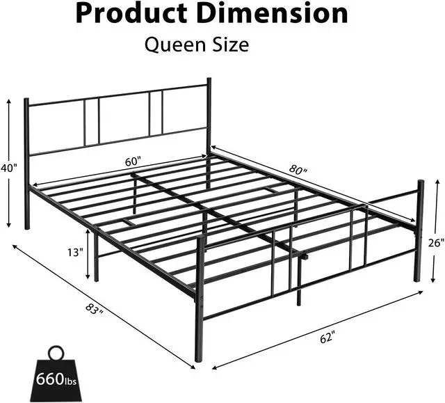 Rustic Bed Easy to Assemble: We provide all essential accessories and steel tubes. Together with instruction, you can easily understand each clarified step and quickly assemble all parts into a cozy platform bed. By the way, it comes with an all-black design, perfectly fitting into various home decors.