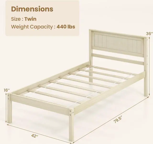 Sturdy Wooden Frame: Thanks to the high-quality solid wood material, the wood bed frame has a large bearing capacity and a long lifespan. With solid wood legs (and strong central support), the bed frame features a non-sinking construction that support up to 440 lbs/660 lbs.