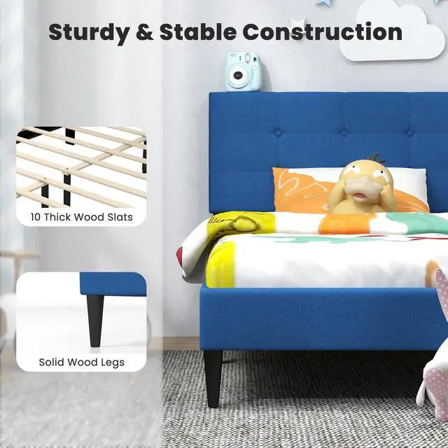 Rugged and Stable Construction: Thanks to 10 wooden slats support, the bed frame presents better sturdiness and 290 lbs strong weight capacity. Together with solid wood legs, the twin-size platform bed is a reliable addition to your living space.