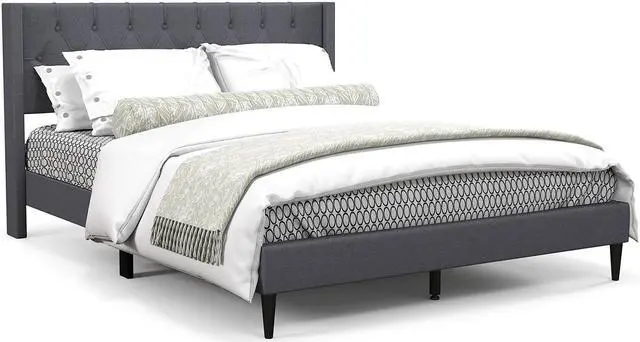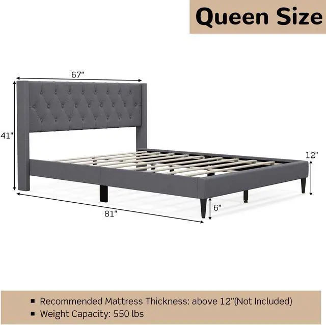 Upholstered Wingback Headboard: The headboard is wrapped in durable linen fabric and high density sponge, providing super comfortable experience when leaning back. Besides, rhombus pattern and stylish button tufted design add upscale aesthetic and tailored touch to your home.