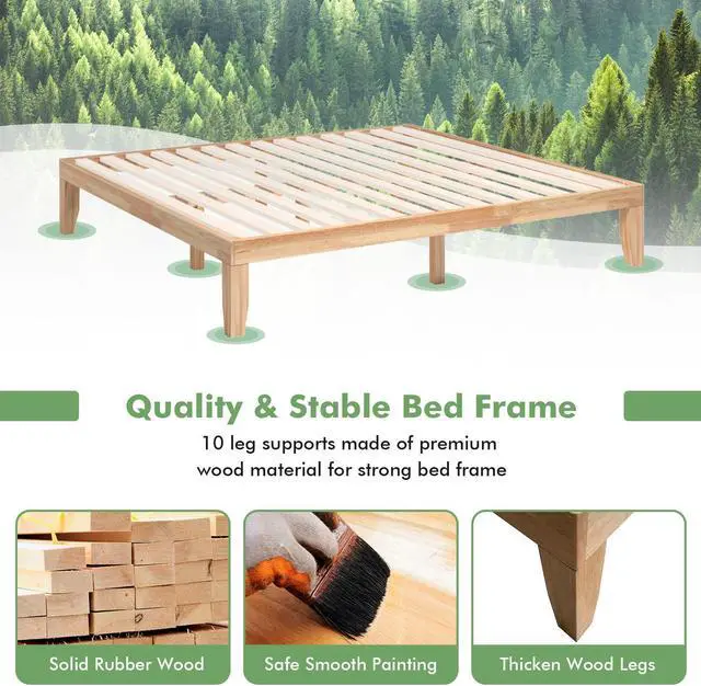 Durable Solid Wood Frame: Made of solid wood, this wooden bed frame is not easily affected by humidity change and leads to cracks. 4 strong legs in the middle of the bed and 6 support legs in the side ensure stableness. In addition, 14 thickened bed boards are on the top which can arrange the weight of the mattress evenly.