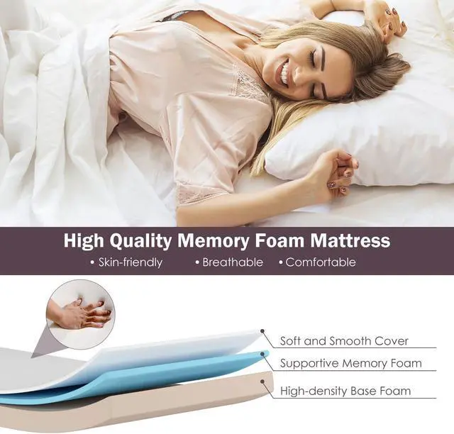 High-Quality Memory Foam Mattress: This portable folding bed comes with a 4" thick mattress made of supportive memory foam and high-density base foam, which effectively release body pressure. In addition, the soft and smooth cover is skin-friendly and breathable, offering an ultra-comfortable sleeping experience.