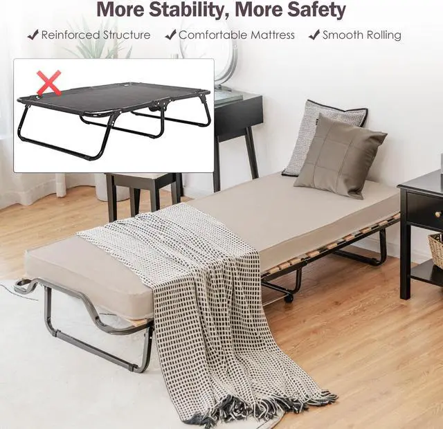 Portable Design and Wide Application: This foldable guest bed is designed with 4 universal wheels for smooth rolling, which allows you to move it around effortlessly. It can be served as a guest bed in a small apartment in case guests visit or as a sleeping bed in the office for better relaxation after a long time working.